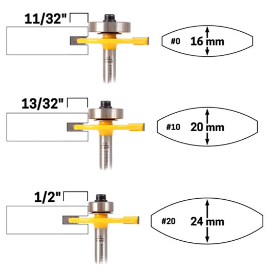 Biscuit Joint Slot 1/2" Shank Cutter Router Bit & Bearing Set