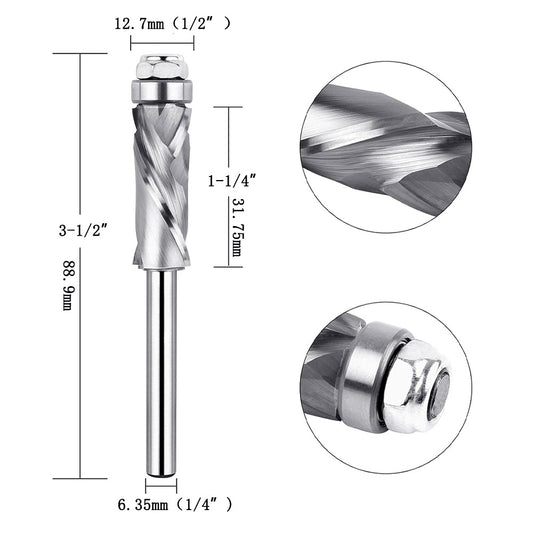Bottom Bearing Compression Spiral Flush Trim Router Bits, Solid Carbide, CNC Pattern and Template for Wood Trimming