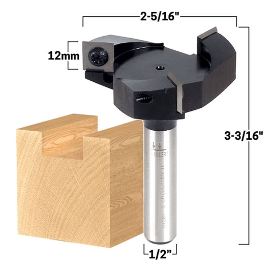 Insert Cutter Spoilboard 2 5/16" Diameter 3 Cutter 1/2" Shank Router Bit