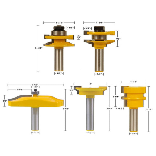 Large Ogee 5 Bit 1/2" Shank Raised Panel Cabinet Door Router Bit Set