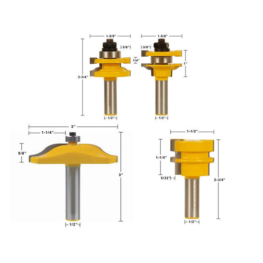 Ogee 4 Bit 1/2" Shank Raised Panel Cabinet Door Router Bit Set