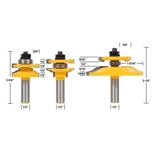Ogee 3 Bit 1/2" Shank Raised Panel Cabinet Door Router Bit Set with Back cutter Panel Raiser