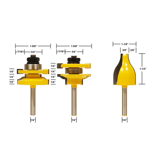 Ogee 3 Bit Raised Panel Cabinet Door 1/4" Shank Router Bit Set with Vertical Panel Raiser