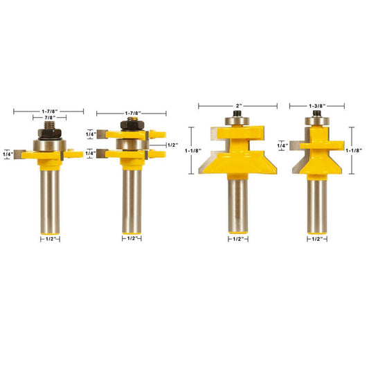 4 Bit Tongue & Groove and V Notch 1/2" Shank Router Bit Set