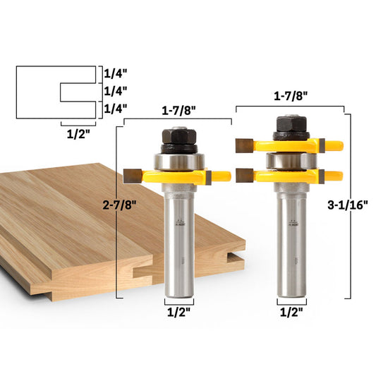 3/4" 2 Bit Tongue and Groove 1/2" Shank Router Bit Set