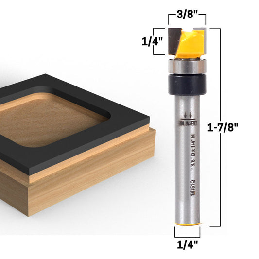 2 Bit 3/8" Diameter Flush Trim Template 1/4" Shank Router Bit Set