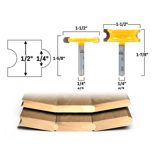 1/4" Bead 1/4" Shank 2 Bit Canoe Joint Router Bit Set