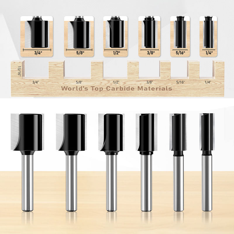 This 6-piece woodworking milling cutter set features alloy double-edged straight cutters for precise grooving, jointing and slotting in various wood materials. Ideal for use on hardwood, softwood, plywood, MDF, particle board, and cork, it delivers clean, smooth cuts for both professional woodworkers and DIY enthusiasts. Compatible with handheld, table-mounted, and CNC routers for versatile woodworking applications.