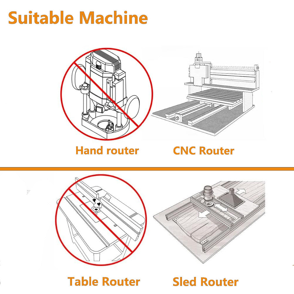 ✅Durable Tungsten Carbide Tips: Both 60° and 90° bits include high-strength tungsten carbide tips for long-lasting sharpness. The 90° bit comes with multi-edge inserts for extended usage. ✅Industrial-Grade 45# Steel Body: Anti-kickback design ensures stability, precision, and safety during high-speed cutting. ✅Versatile Applications: Perfect for V-groove engraving, decorative signs, and fine woodworking projects. Works on a wide range of wood and composite materials. ✅Cost-Effective Design: Replaceable tungsten tips allow for long-term use without replacing the whole bit, reducing costs compared to traditional brazed bits. ✅Optimized Cutting Performance: Recommended to start with moderate feed rate and high RPM for best results.